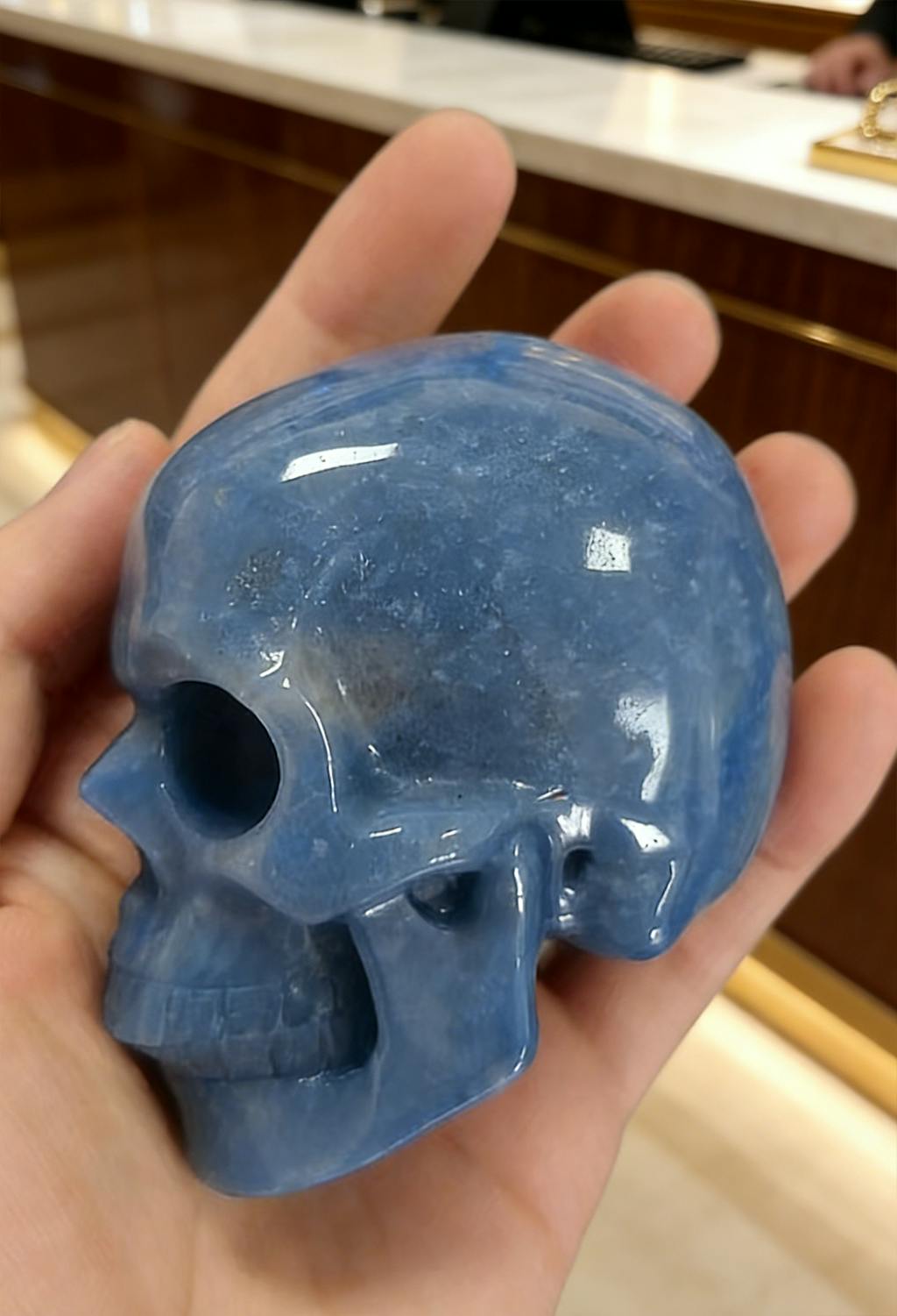 This Blue Aventurine Skull guards the ripples of your energy —