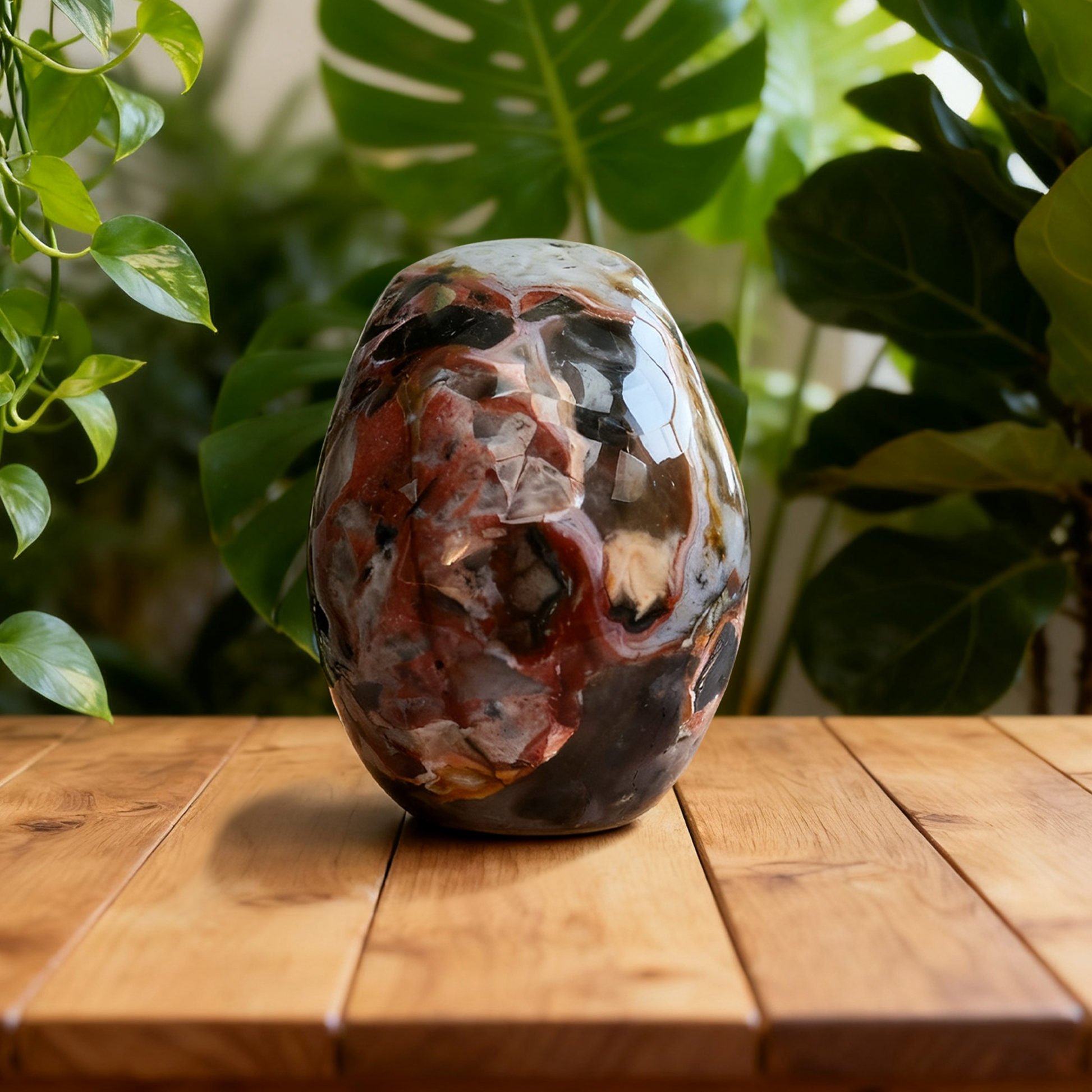 Material: 100% Natural Red Crazy Lace Agate, ethically sourced, polished to a glossy finish.