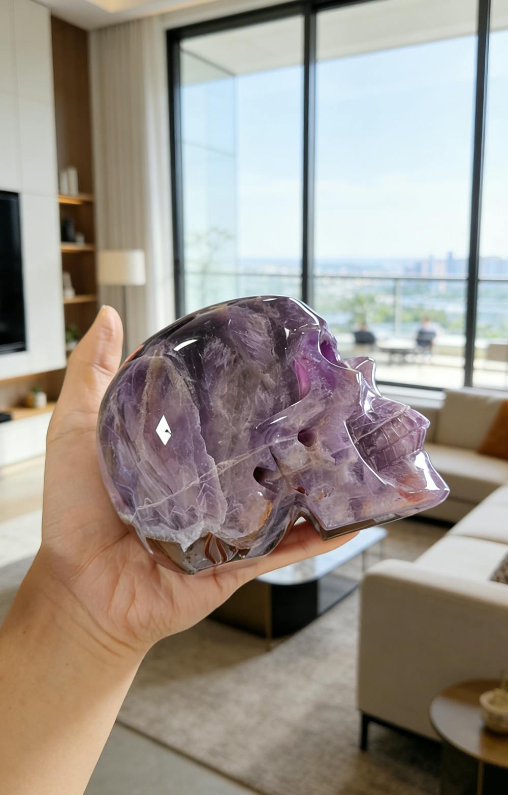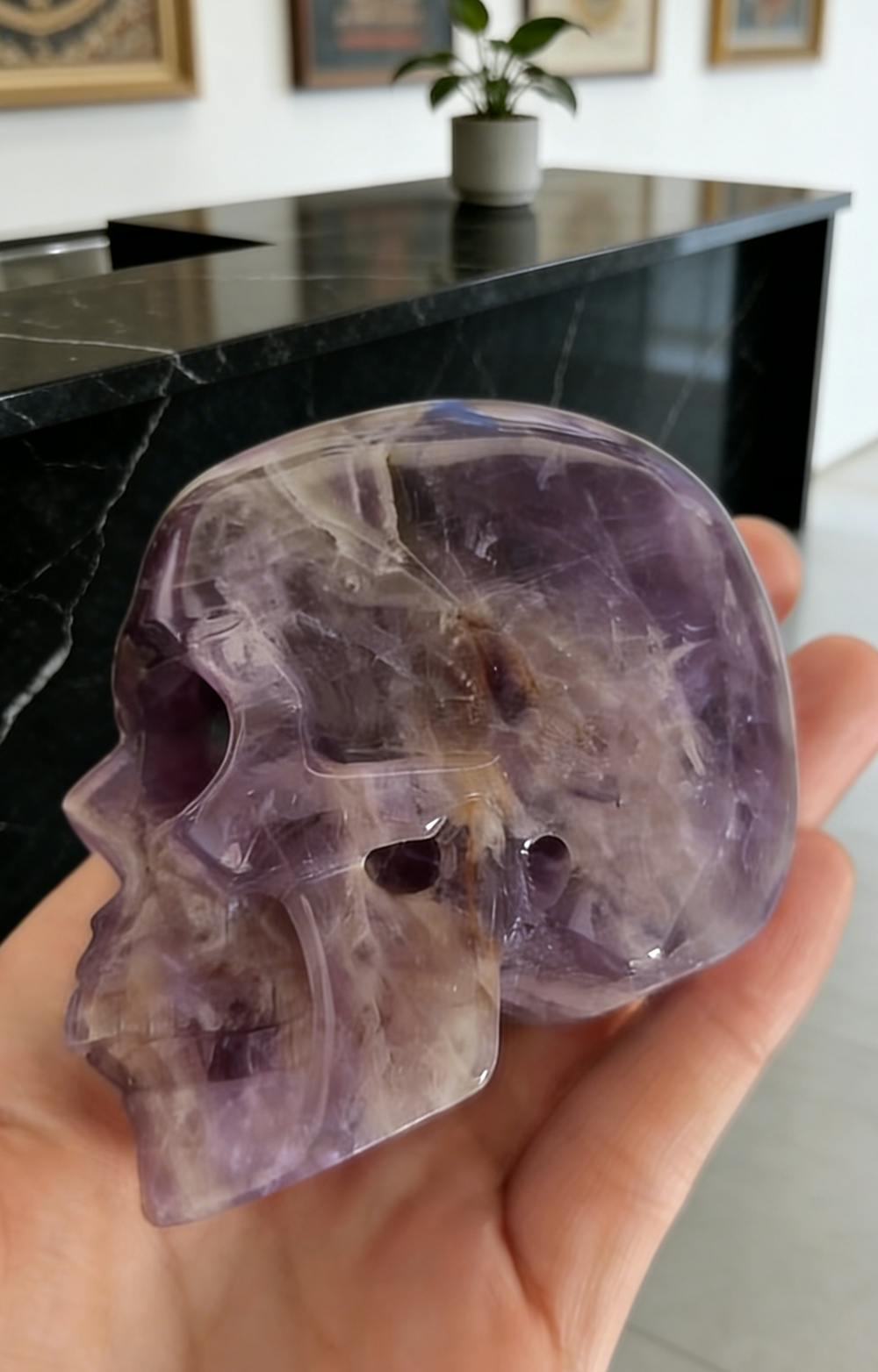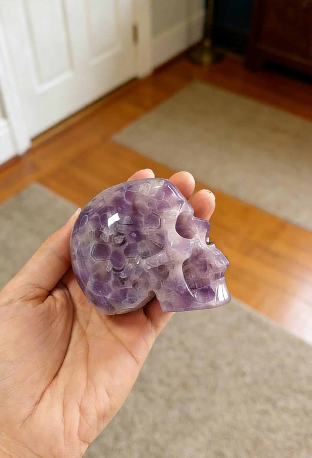 The skull is an ancient symbol of wisdom and life’s cycles. Amethyst, the 'Stone of Wisdom,' carries serene, high-frequency energy that bridges higher realms. Sculpted into a skull, it becomes a silent guide, calming the mind, revealing inner truths, and inspiring deep insight.