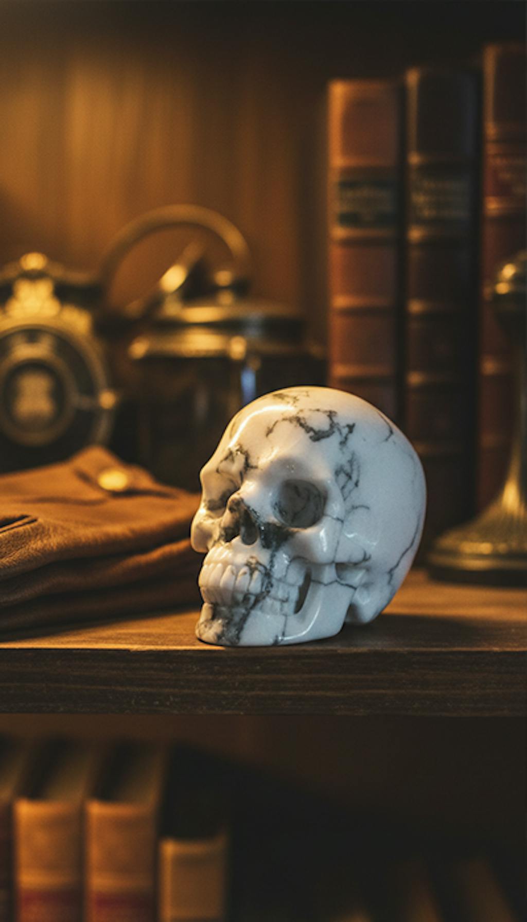 Born from the sacred “Stone of the Sky,” White Turquoise carries the deep blue of endless skies and earthy iron veins that connect heaven and earth. Sculpted into a skull, it becomes a bridge between the physical and spiritual worlds — a talisman of wisdom and protection.