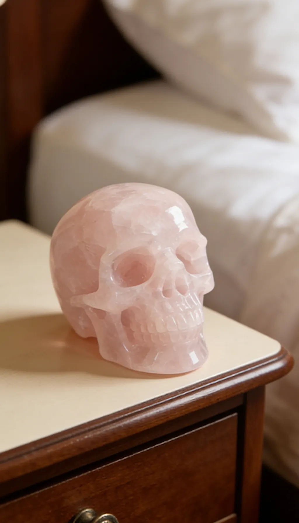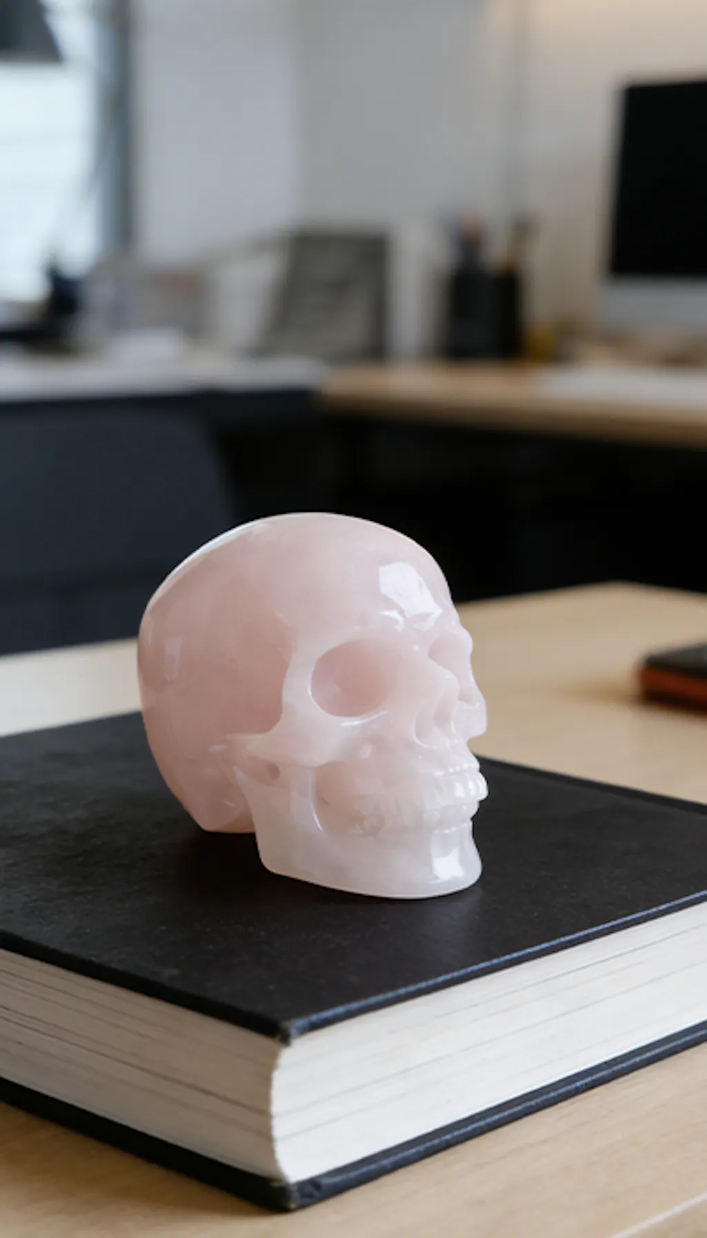 In ancient wisdom, the skull symbolizes transformation and rebirth. Rose Quartz, the 'Stone of Love,' carries unconditional love and healing energy. Sculpted into a skull, it becomes a gentle guardian — a reminder that true courage comes from love, and wisdom comes from inner harmony.